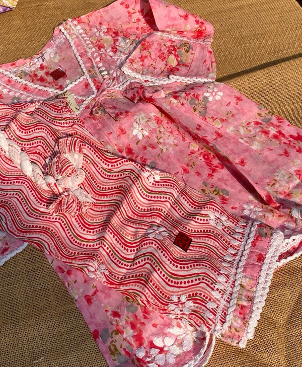 Dress your little princesses in our adorable kurta and plazo sets, crafted in soft mulmul fabric. These sets feature floral prints, lace details, and bell sleeves, perfect for playdates, parties, or everyday fun.