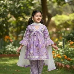Dress your little princesses in our adorable kurta and plazo sets, crafted in soft mulmul fabric. These sets feature floral prints, lace details, and bell sleeves, perfect for playdates, parties, or everyday fun.