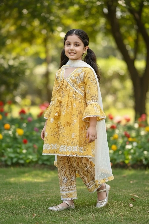 Dress your little princesses in our adorable kurta and plazo sets, crafted in soft mulmul fabric. These sets feature floral prints, lace details, and bell sleeves, perfect for playdates, parties, or everyday fun.