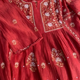 Aneesa – Apple Red Handcrafted Chikankari Gown Set