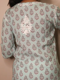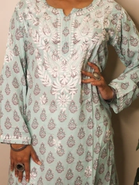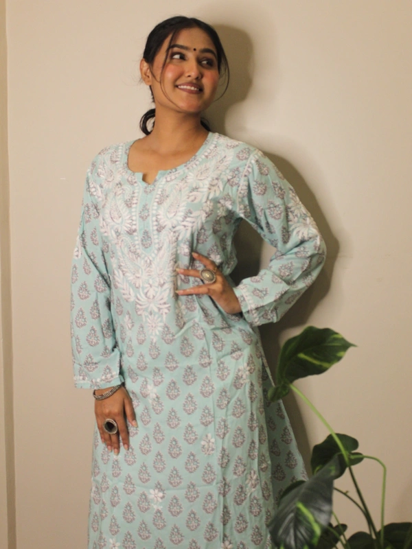 Aqua Green Chikankari Straight Long Kurti