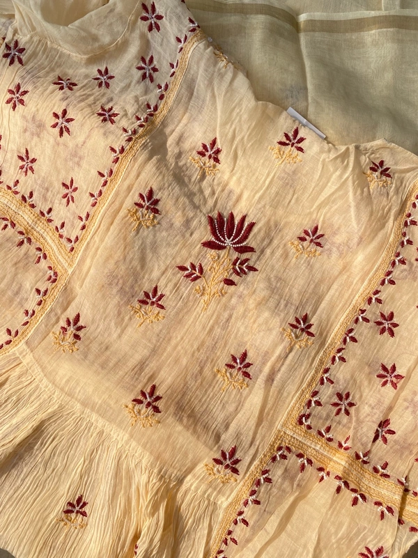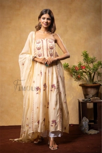 Beige Chikankari and Zardozi Semi-Stitched Gown With Dupatta