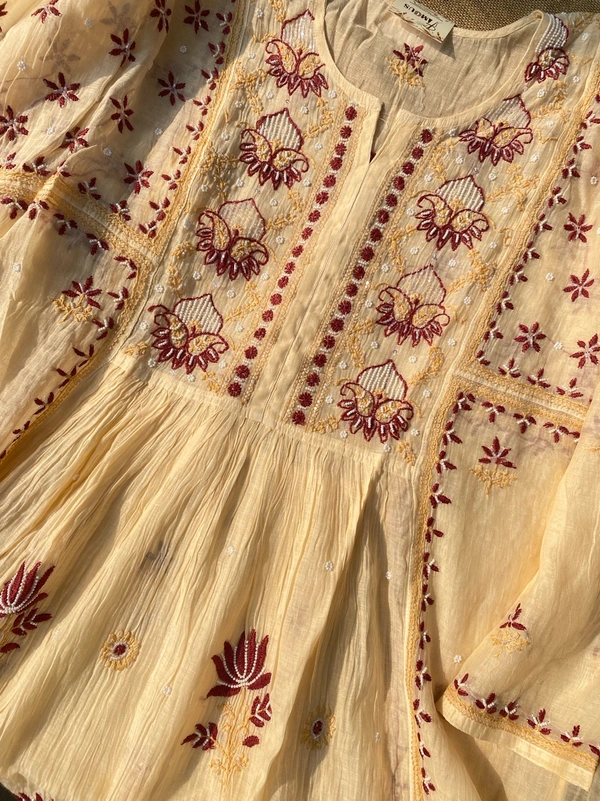 - Embroidery: Fine Chikankari handwork enriched with pearls, katdana, and sequins for a luxurious touch.