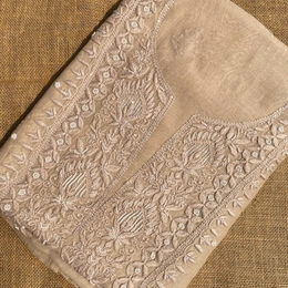 Beige Mul Chanderi Chikankari Unstiched Dress Material