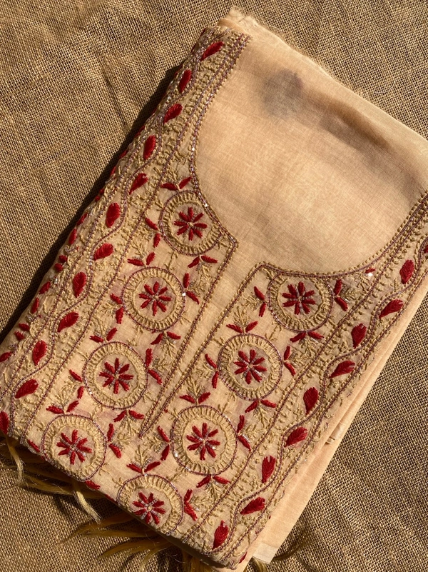 Beige With Maroon Chikankari Unstiched Dress Material