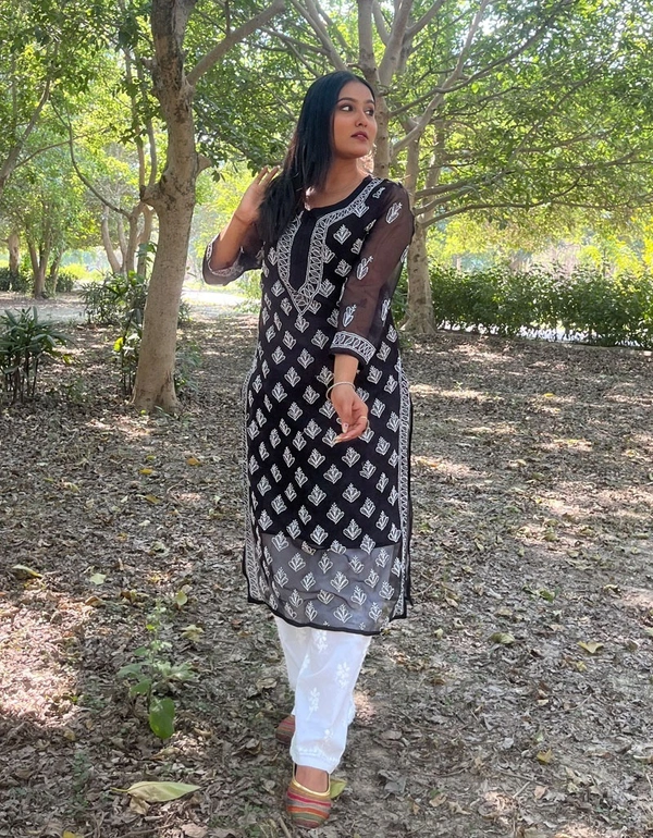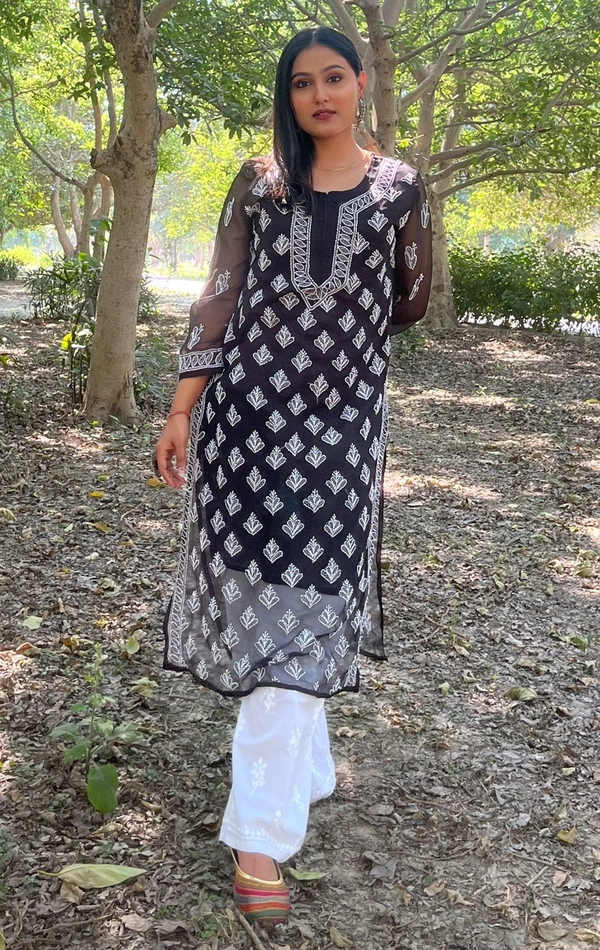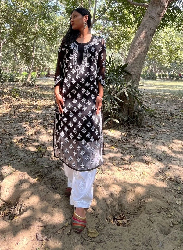 Black Chikankari Buty Jaal Kurti
