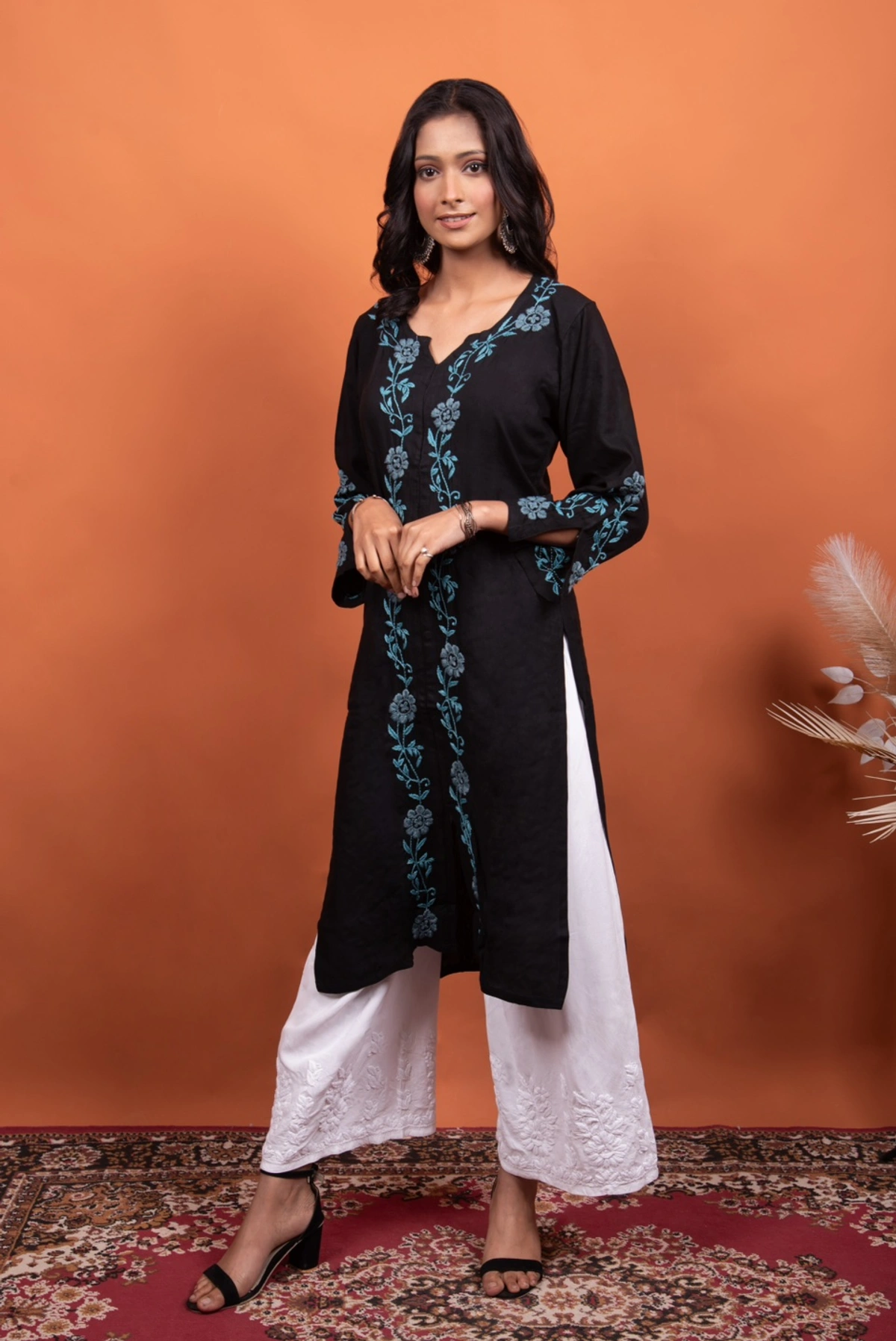 Black Chikankari Stylish Straight Long Kurti