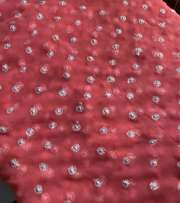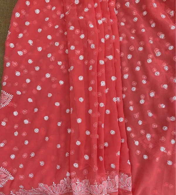 Carrot Pink Chikankari Saree with Resham Embroidery & Kangan Work