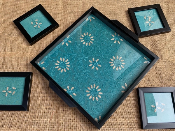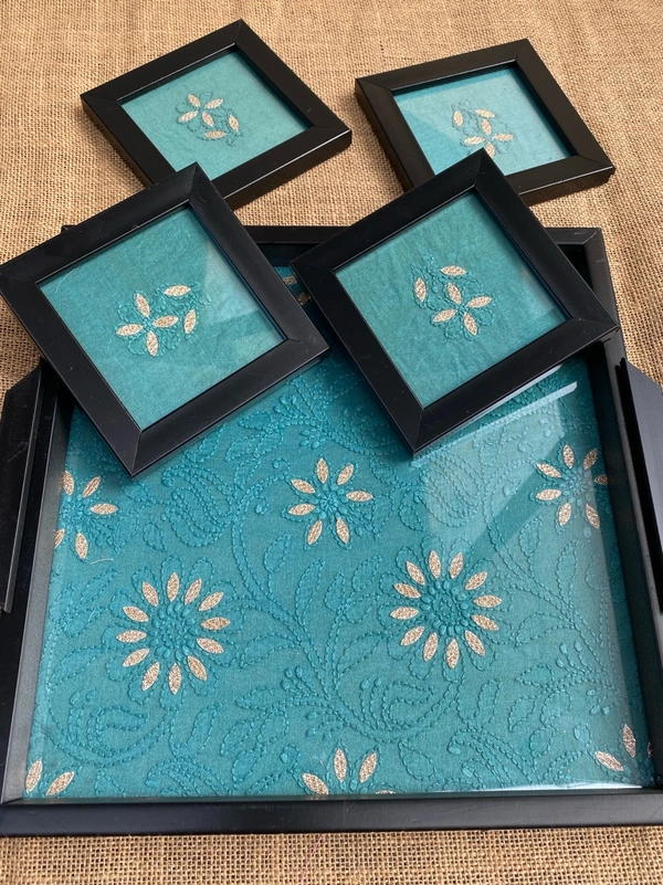 Chikankari Tray With Four Coaster Set