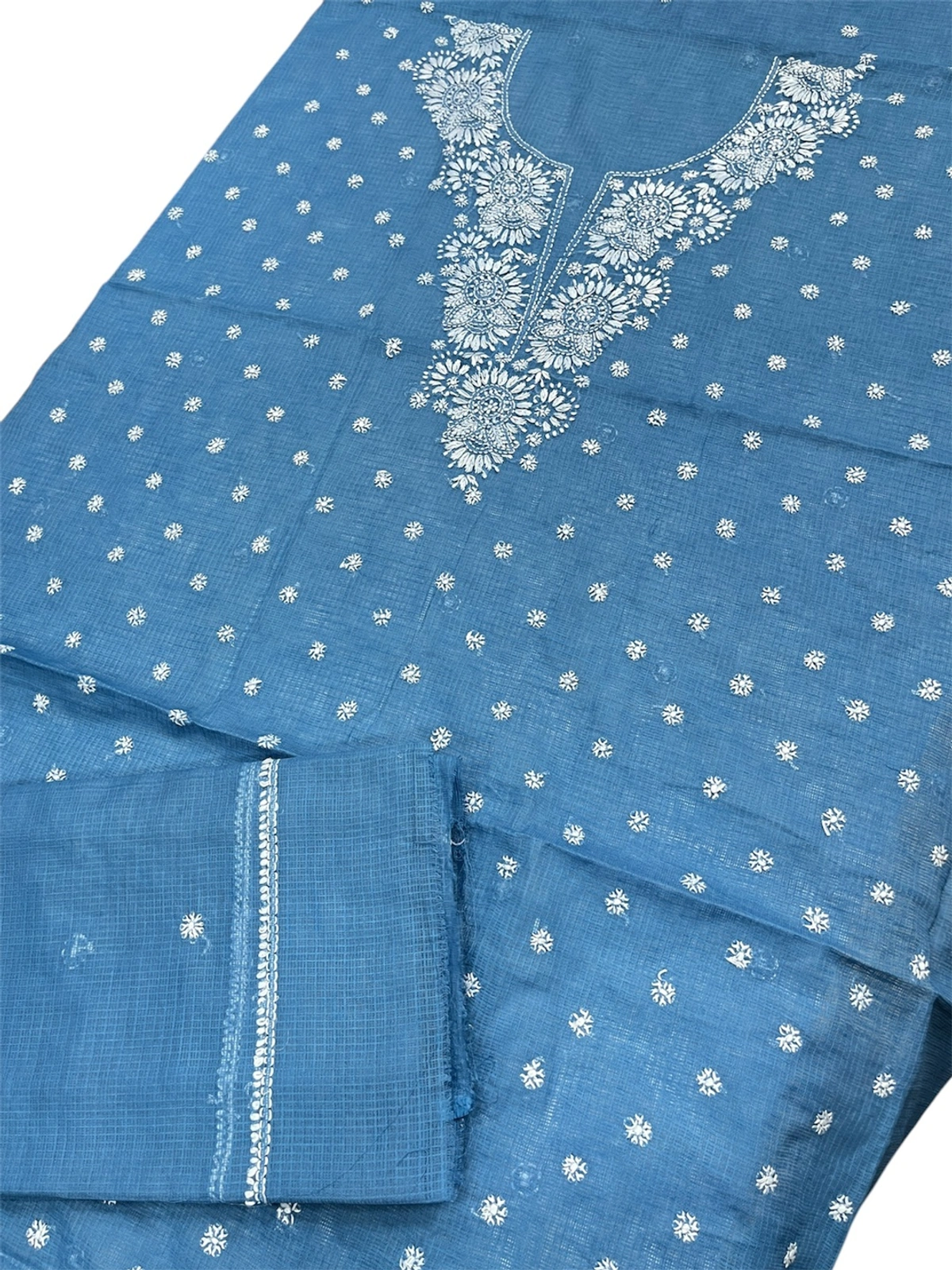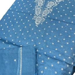 Chikankari Unstiched Kurta Dupatta In Kota Fabric
