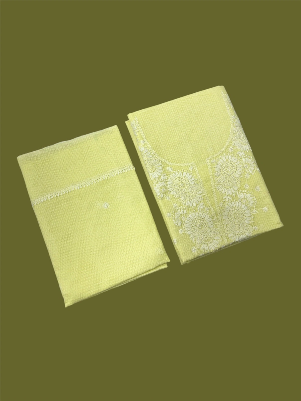 Chikankari Unstiched Kurta Dupatta In Kota Fabric