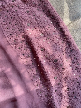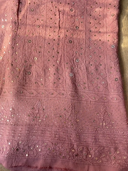 Elevate your ethnic wardrobe with our exquisite dusty rose pink Chikankari unstitched kurta dupatta set, crafted on luxurious viscose georgette fabric. This stunning ensemble features all-over fine Chikankari embroidery, adorned with delicate mukaish highlights.