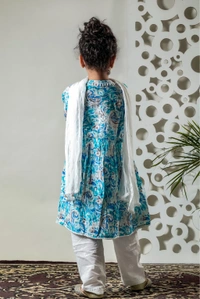 Fiza Angarkha Mul Print Kids Chikankari Set - Blue