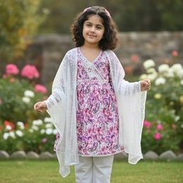 Dress your little princesses in our adorable kurta and plazo sets, crafted in soft mulmul fabric. These sets feature floral prints, lace details, and bell sleeves, perfect for playdates, parties, or everyday fun.