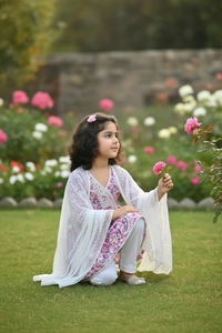 Dress your little princesses in our adorable kurta and plazo sets, crafted in soft mulmul fabric. These sets feature floral prints, lace details, and bell sleeves, perfect for playdates, parties, or everyday fun.