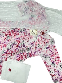- Features: Floral prints, lace details on neck, sleeves, and bottom