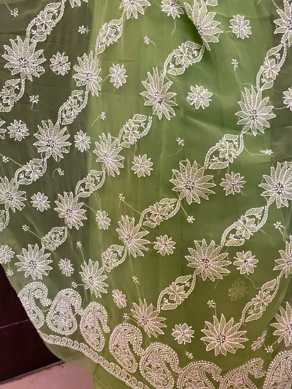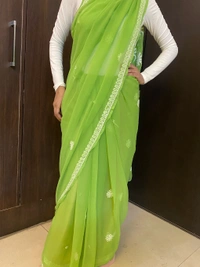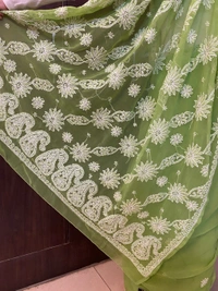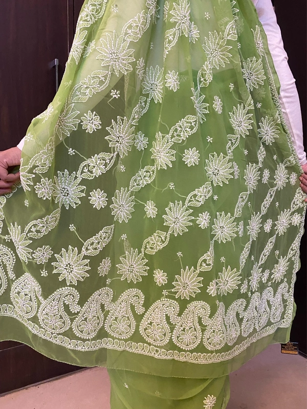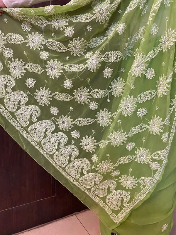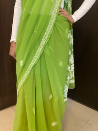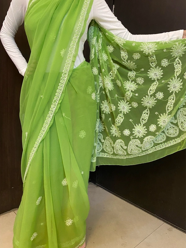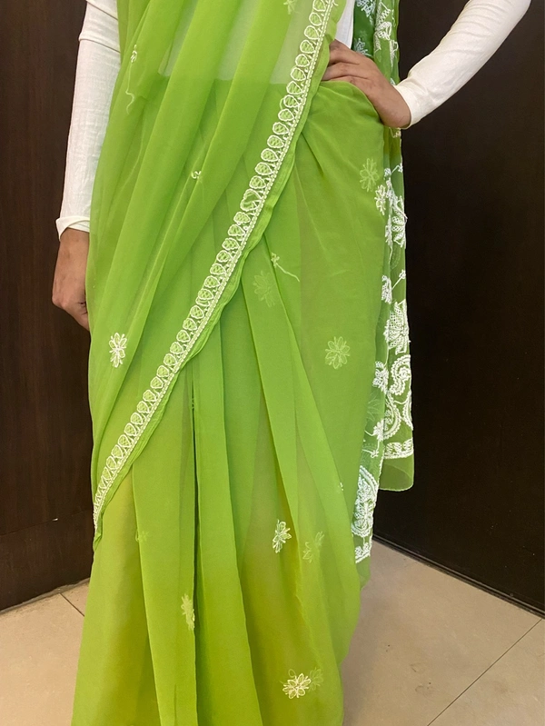 Green Chikankari White Embroidered Saree