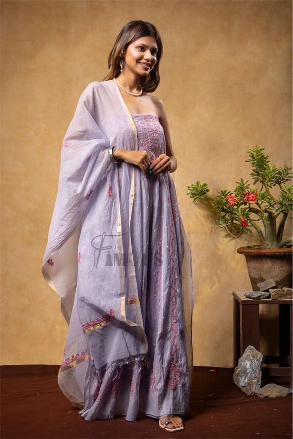 Elegant Grey Chikankari Anarkali and Dupatta Set