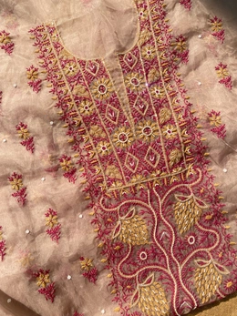 Elevate your style with our exquisite Chikankari Unstitched Kurta & Dupatta Set, crafted in premium Organza fabric.