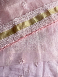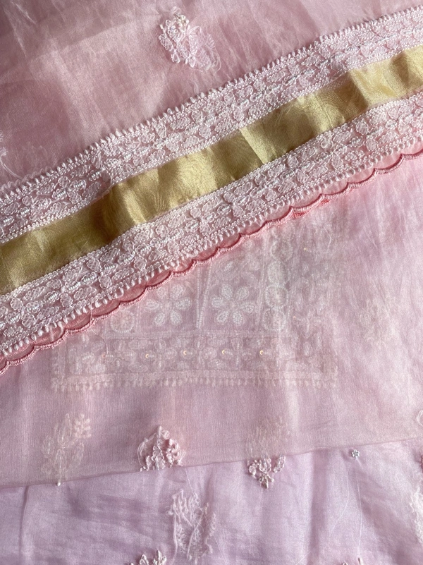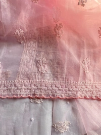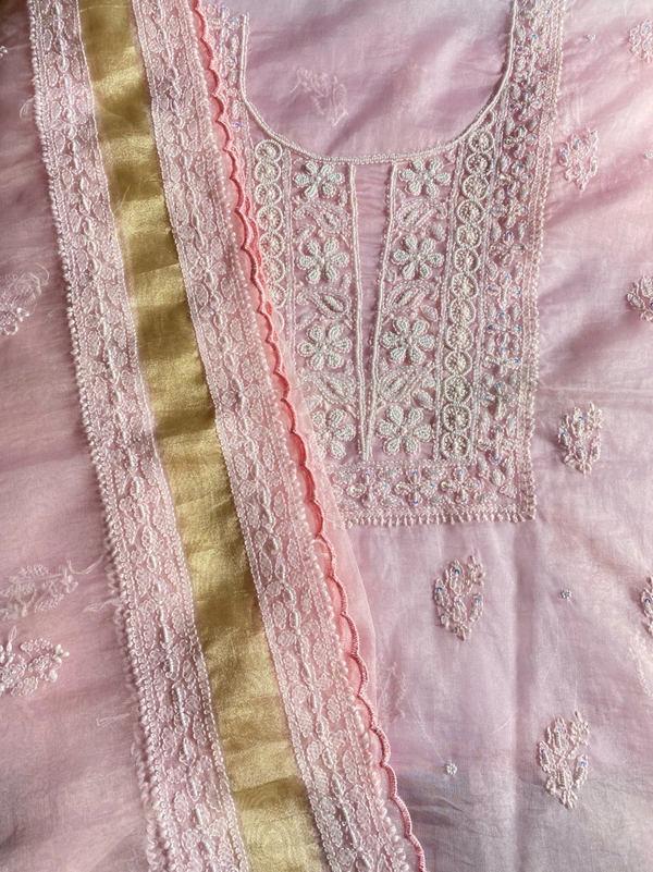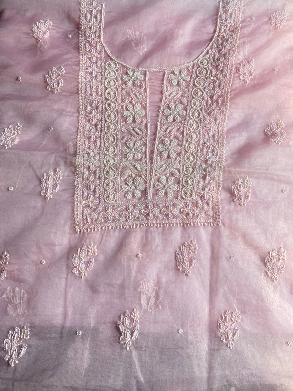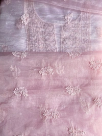 Elevate your wedding and special occasion wardrobe with our exquisite light pink Chikankari unstitched kurta dupatta set. This stunning ensemble features fine Chikankari work, intricately adorned with pearls, beads, and sequence work