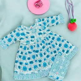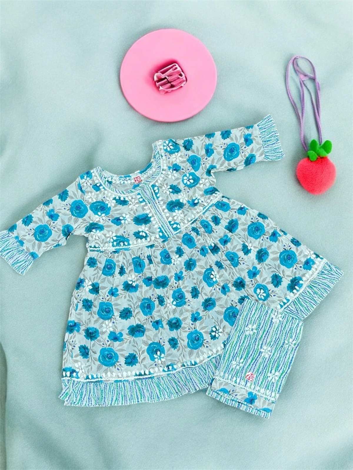Adorn your little one in style with our exquisite Kids' Co-ord Sets, crafted in soft, breathable mulmul cotton. This delightful set features a beautiful mehndi green color with intricate fine Chikankari embroidery, adding a touch of elegance to your child's wardrobe.
