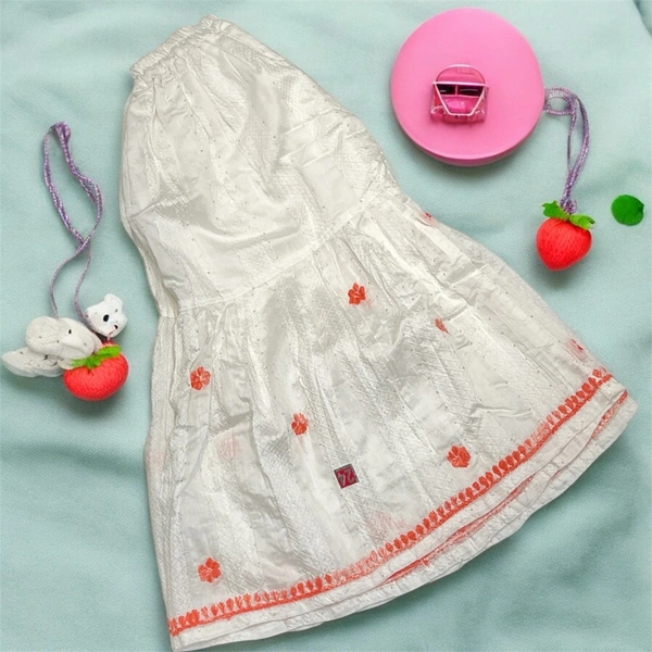 Adorn your little one in traditional elegance with our exquisite Chikankari kurti gharara set. Crafted from luxurious muslin silk, the kurti features intricate Chikankari embroidery on a pristine white fabric, highlighted with vibrant colored threads.