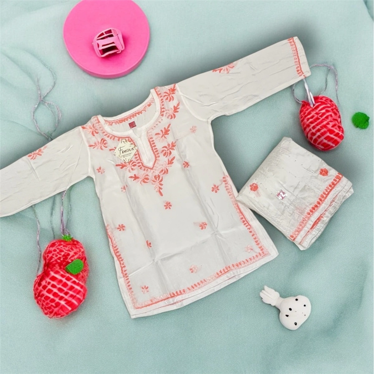 - Color: White with peach embroidery