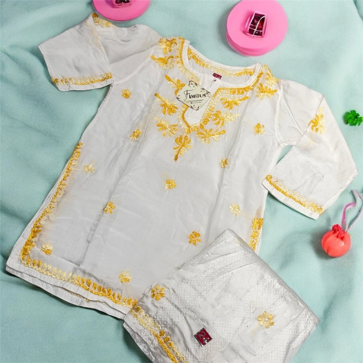 - Embroidery: Delicate Chikankari hand embroidery in colorful threads