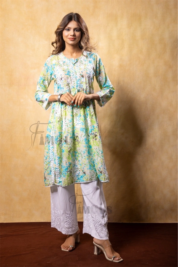 Green Floral Print Chikankari Naira Kurti