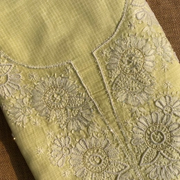 Lemon Yellow Chikankari Unstiched Kota Dress