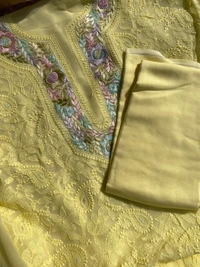 LemonYellow Chikankari Parsigara Viscose Unstiched Dress