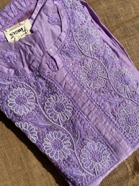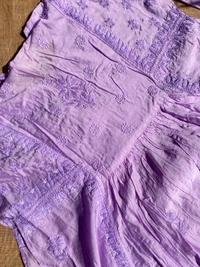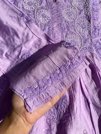 Immerse yourself in exquisite elegance with our Lilac Elegant Chikankari Semi-Stitched Gown. Crafted from luxurious Chanderi silk fabric, this masterpiece is adorned with intricate hand embroidery that celebrates traditional craftsmanship. The soft lilac hue exudes sophistication, making it the perfect choice for weddings, festive celebrations, formal events, and special occasions.