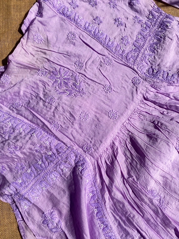 Lilac Elegant Chikankari Semi-Stitched Gown With Dupatta