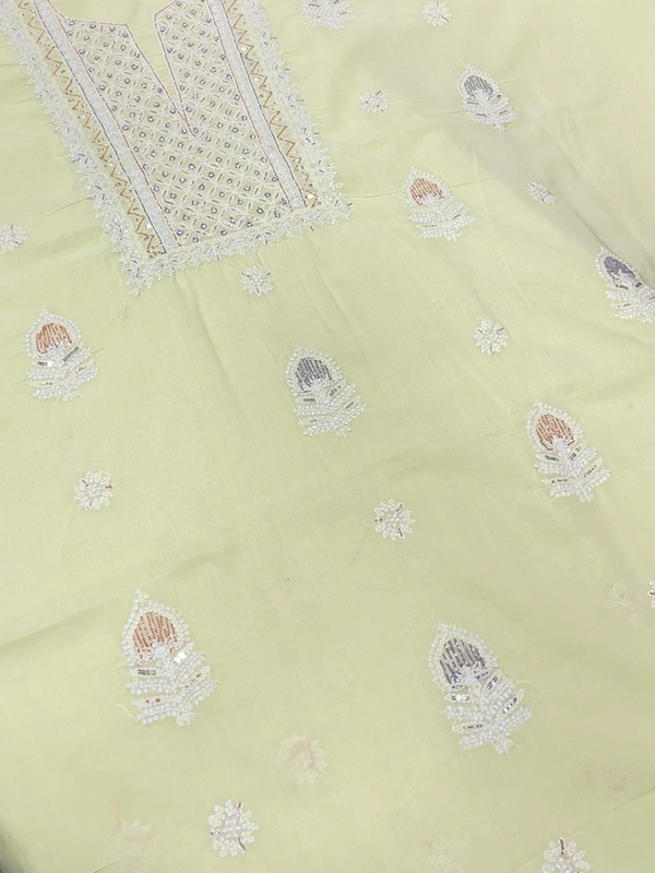 - Coordinated Bottom Fabric: Cotton voile bottom fabric featuring matching embroidery motifs to complete the ensemble.