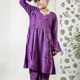 Let your little princess shine in our beautifully crafted Chikankari frock-style dress set, designed with grace and comfort in mind.
