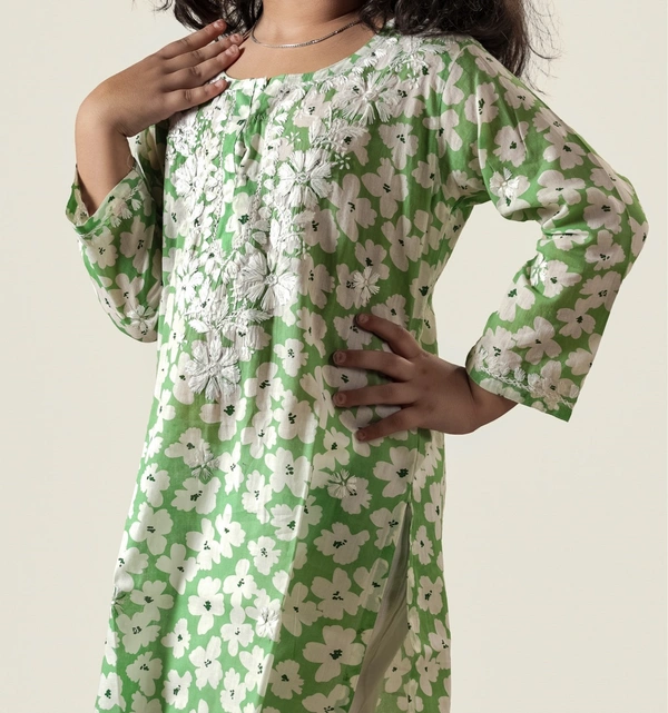 Little Noor – Green Mulmul Chikankari Kidswear Set