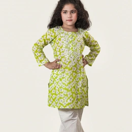 Little Noor – Lime Green Mulmul Chikankari Kidswear Set