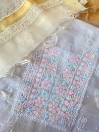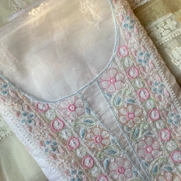- Kurta: Unstitched, with beautiful Chikankari embroidery