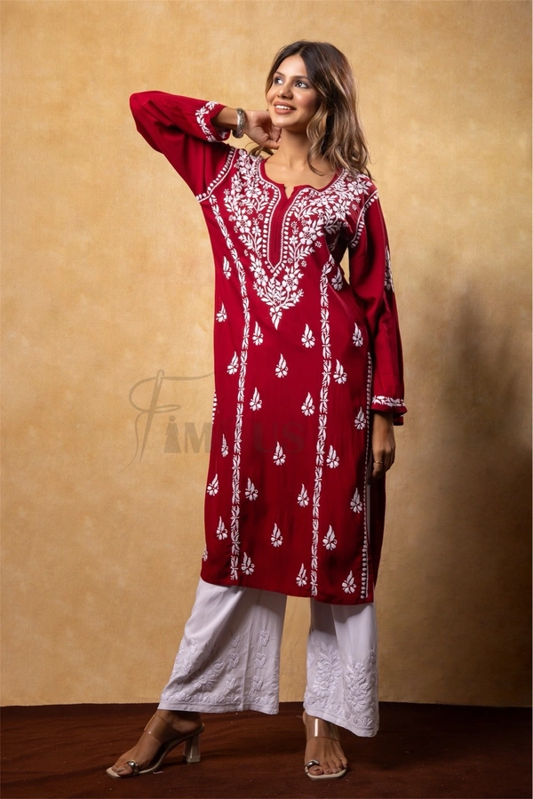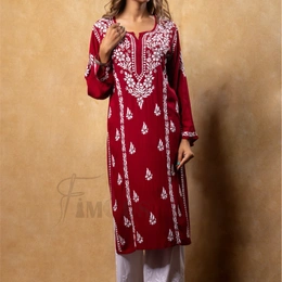 Maroon Chikankari Kali Style Long Kurti