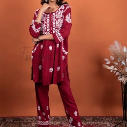 Maroon Chikankari Pocket Style Coord Set
