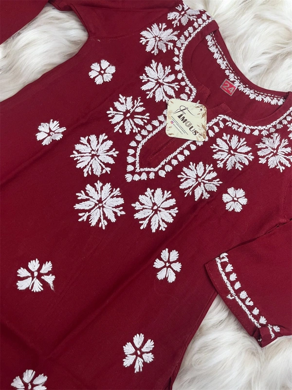 Maroon Reyon Chikankari Kids Dress
