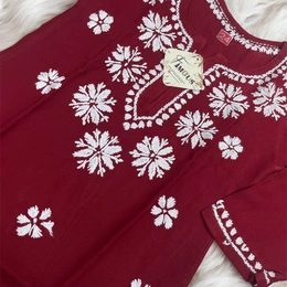 Maroon Reyon Chikankari Kids Dress