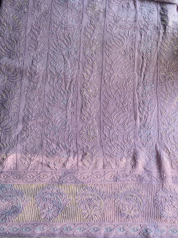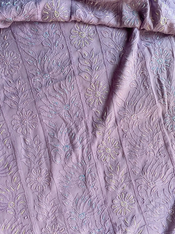 Mauve Chikankari Viscose Georgette Unstiched Dress
