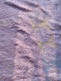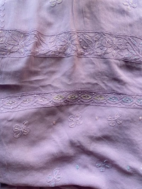 - Work: Fine Chikankari embroidery with pearls, beads, and sequins