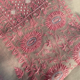 Elevate your style with our exquisite Light Grey Chikankari Unstitched Kurta & Dupatta Set, crafted in pure Organza fabric. This stunning ensemble features delicate pink Chikankari embroidery, beautifully enhanced with pearls, beads, and sequins work. The scallop design on the dupatta and sleeves adds a touch of sophistication, making it perfect for party wear.