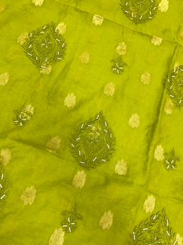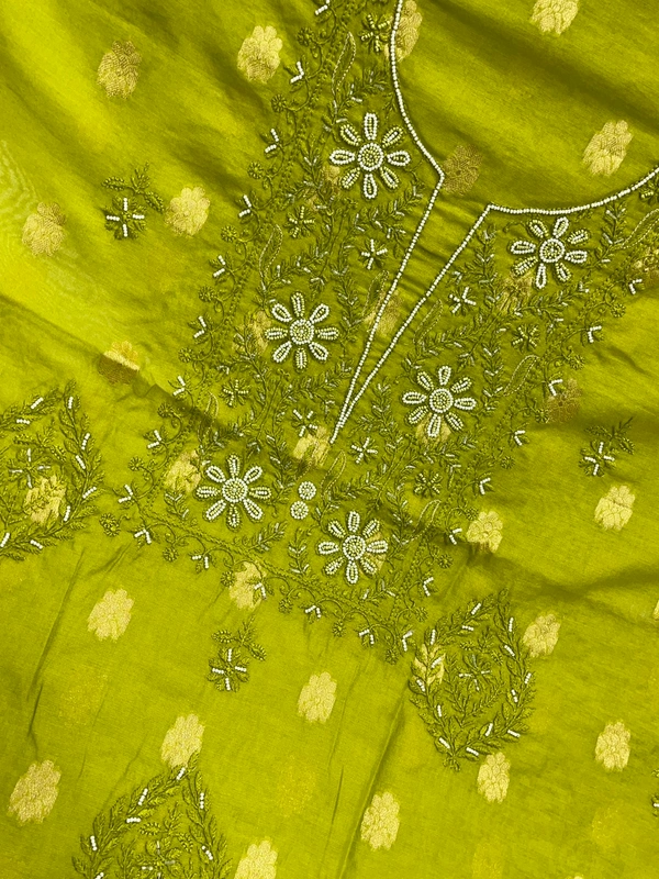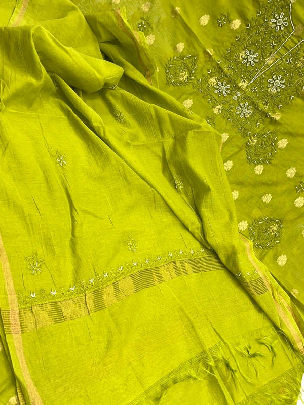 Mehndi Chikankari Unstiched Kurta Dupatta