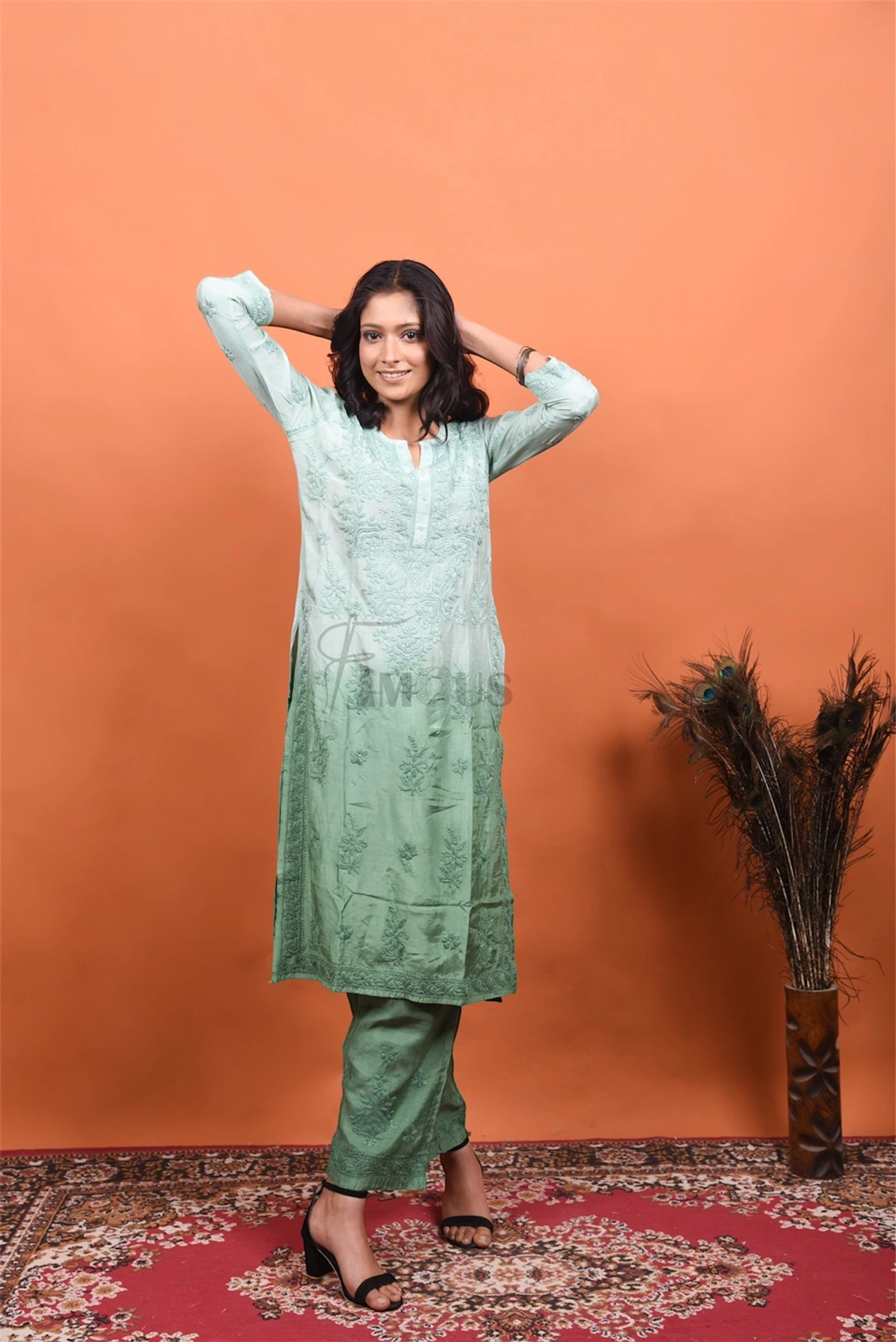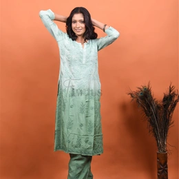 Mint Green Muslin Chikankari Kurti Plazo Set