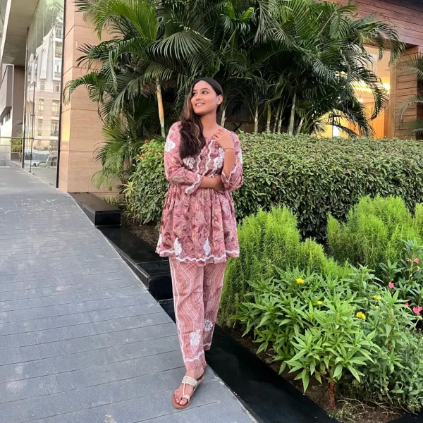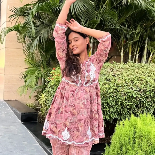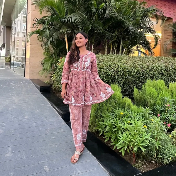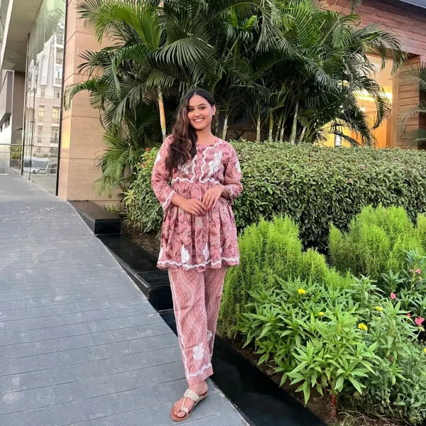Mulprint Chikankari Coord Set(wine)