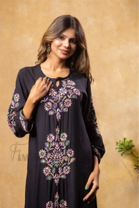 Nargis Chikankari Multi Embroidered Long Kurta - Black
