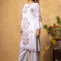 Elevate your wardrobe with timeless elegance and intricate craftsmanship! The Nargis Chikankari Multi Embroidered Long Kurta in a pristine white hue is the epitome of traditional sophistication, designed to make you stand out at every occasion. Perfectly blending comfort and style, this straight long kurti is an ideal choice for women who love to embrace their cultural roots while exuding grace.